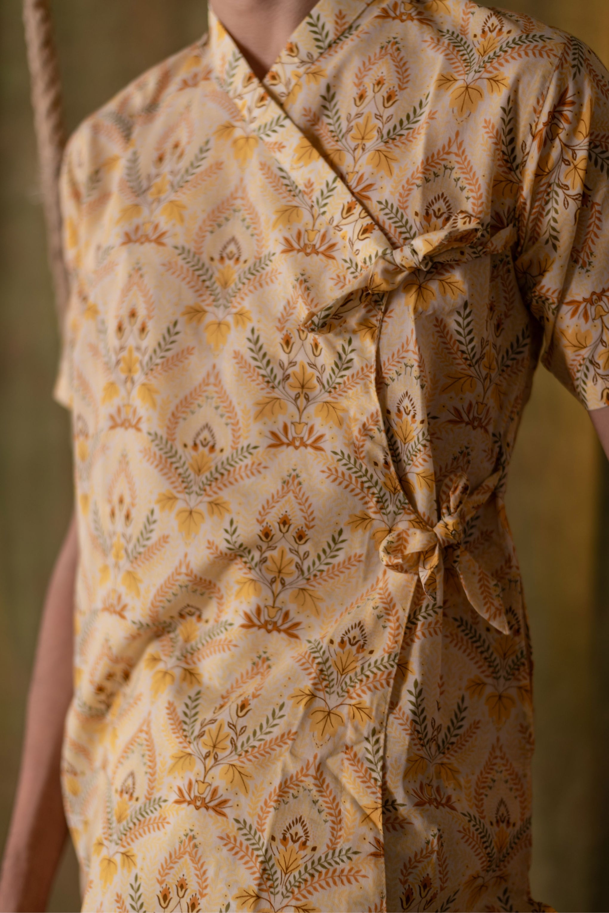 Men's Printed Cotton Angarakha Kurta - Half Sleeve | Amber Breeze