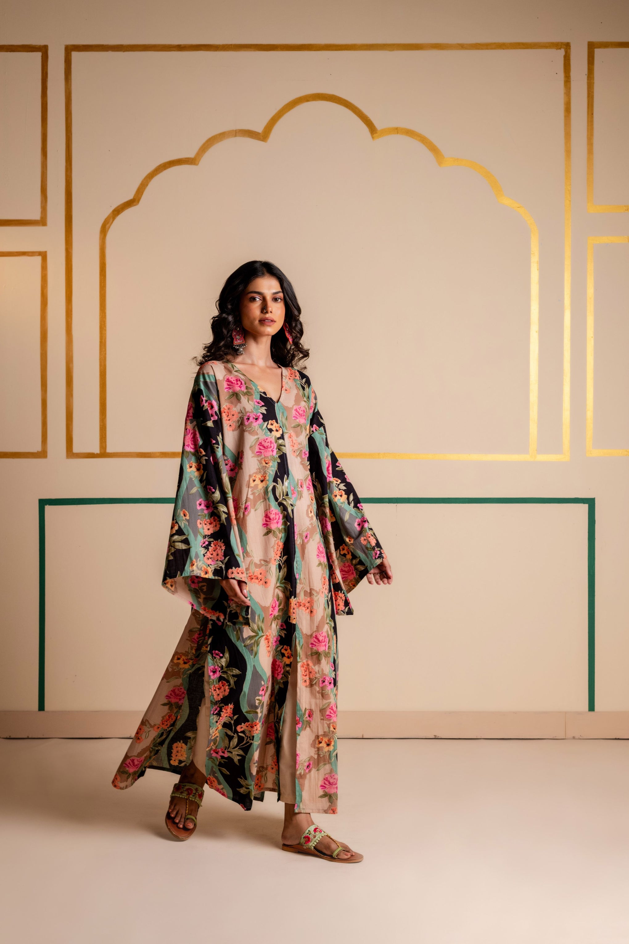 Longline Cotton Kaftan Kurta with Slits for Women | Boho Botanica